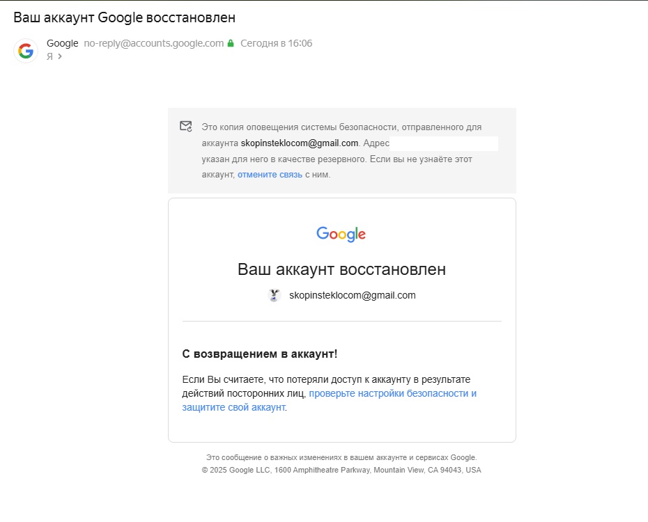 Почты мы дублировали. И вот сегодня восстановили свой старый ящик и старую переписку. К сожалению, пока не все наши электронные почты восстановили. У третьих лиц может оставаться доступ до сих пор.