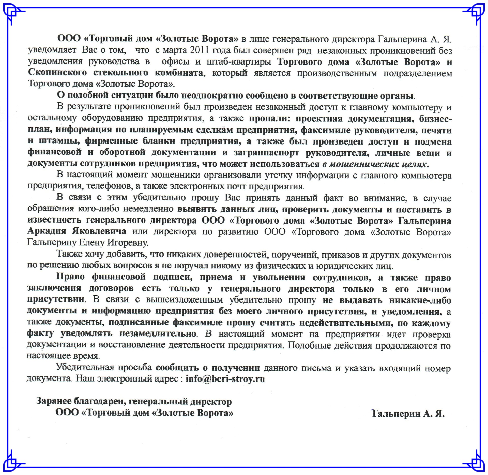 Более 100 информационных писем было разослано: публикуем текст нашего информационного письма.