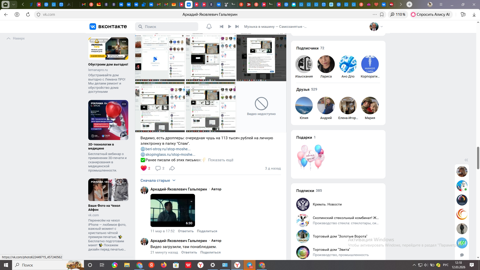 Опубликовали видео о работе мошенники. Тот, кто живет в нашем компьютере его сломал или сломала. И сделал или сделала страницу недоступной.