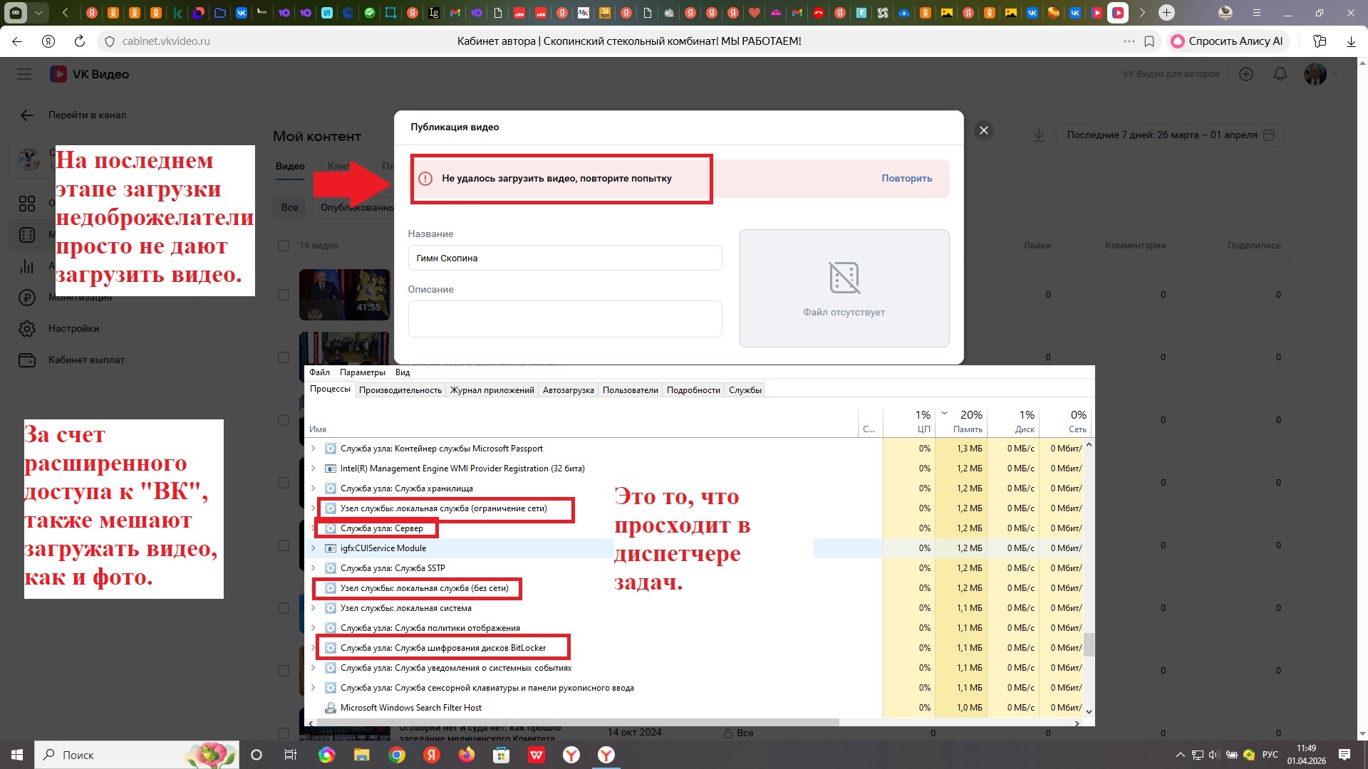 Пока создавали видео, недоброжелатели пытались прерывать работу программы по созданию видео. У них есть незаконный доступ к нашему компьютеру.